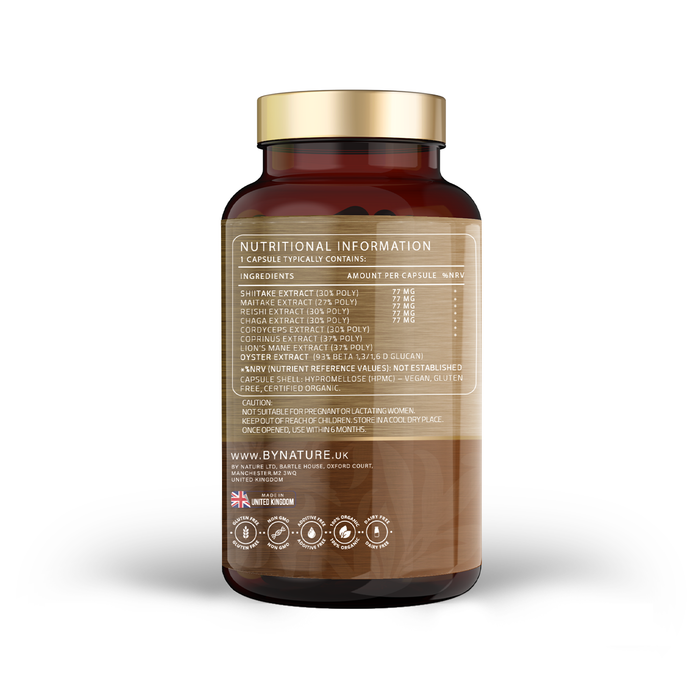 Sourced from organic, European-grown mushrooms, cultivated without the use of chemicals or pesticides. This blend is Soil Association certified organic, ensuring a pure, high-quality product.